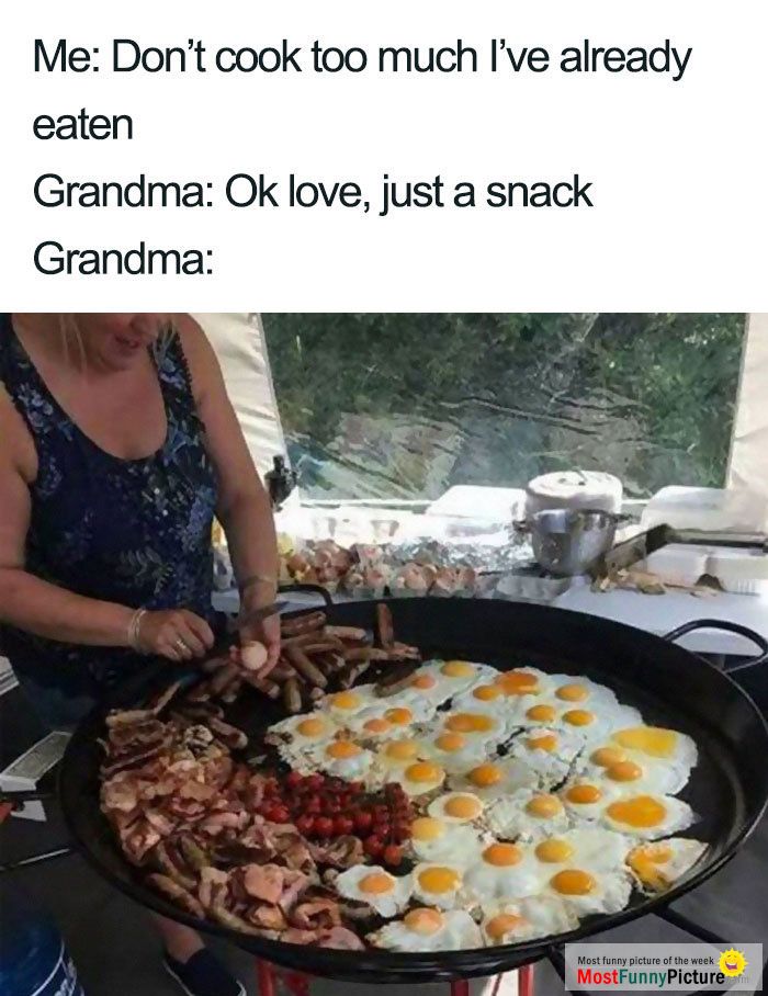 Grandma cooks for son